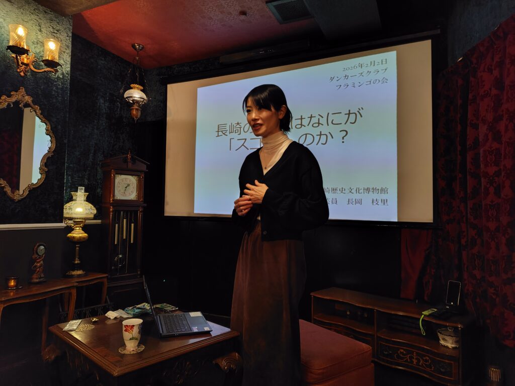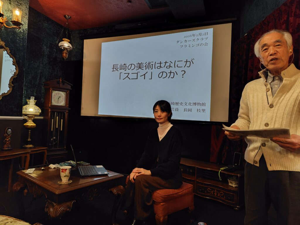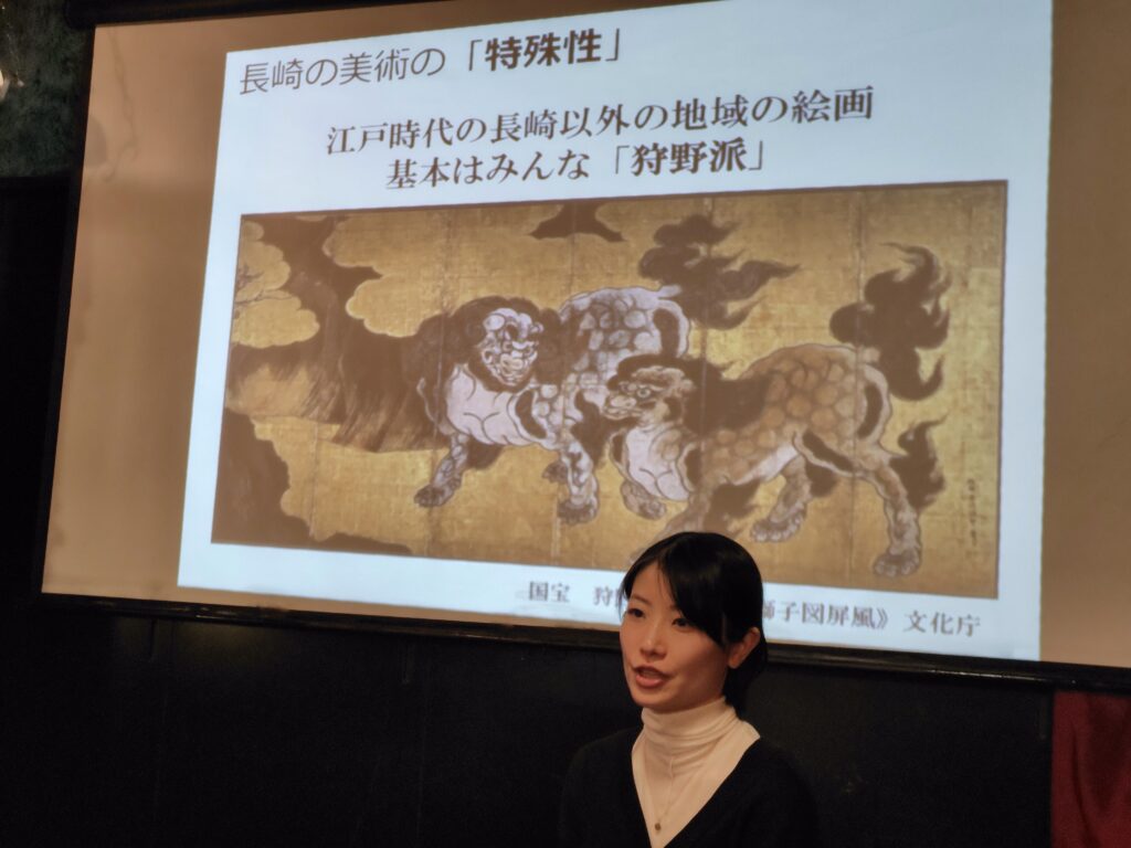 今回は、長崎歴史文化博物館学芸員の長岡枝里様を講師として招聘し、「長崎の美術はなにが{すごい}のか?」とのテーマに沿って約1時間半ご講演いただきました。