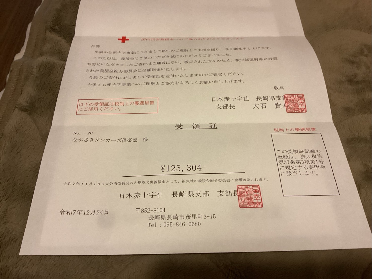 12月24日日本赤十字社 長崎県支部に募金を届けました。