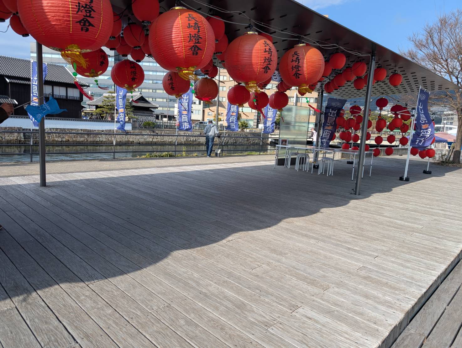 周辺はランタンの出店が並び、タバコの吸殻に加え紙くずが散らかっていました。出島東側側溝にもいつもより多くのゴミ、観光客で賑わうのでしょうがないかとも思ったりします。
